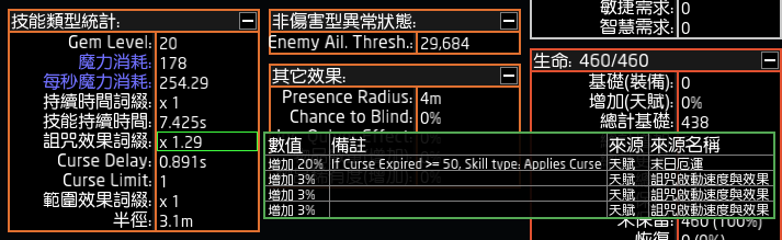 另外目前版本(0.3.1b)PoB的詛咒效果算法是錯誤。