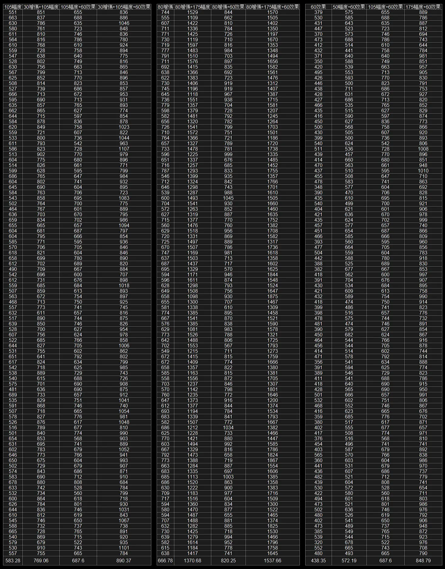 分別測試各種比例的增傷%、幅度%和60%效果,觀測幅度和效果的影響程度,反推毒傷公式。
