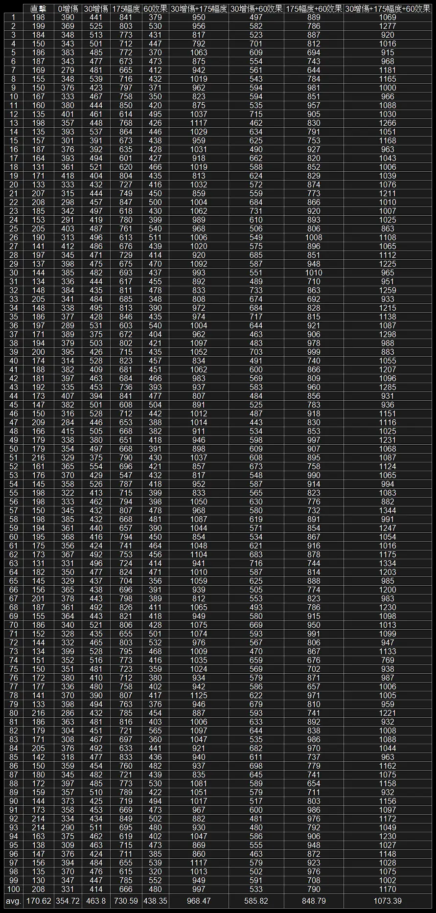 每組各測100次取均傷,共1800次(文末),最後把數據丟給GPT算工程數學,取最可能的公式。