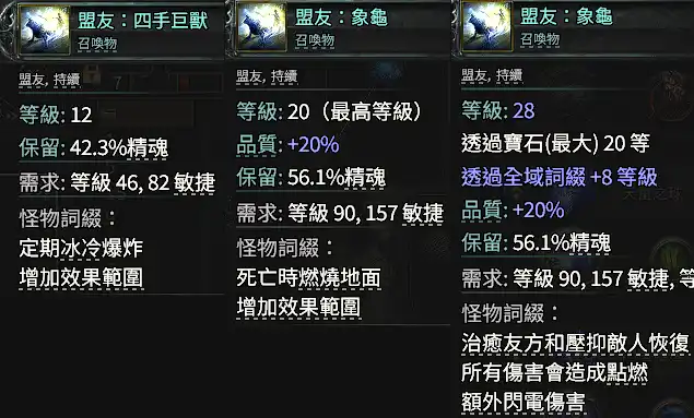 ◈主要: 召喚物等級,召喚物/盟友生命,召喚物暴傷