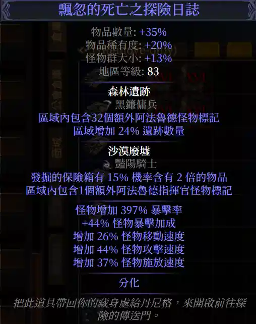 從蜃景探險掉落的日誌,有機率包含1個阿法魯德指揮官的詞綴。(必出王)